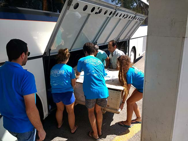 Η χελώνα παρέμεινε σε ελεγχόμενο χώρο τη νύχτα και σήμερα το πρωί ξεκίνησε το ταξίδι της προς την Αθήνα, όπου θα την παραλάβουν εθελοντές του Κέντρου Διάσωσης Θαλάσσιων Χελωνών του ΑΡΧΕΛΩΝ.