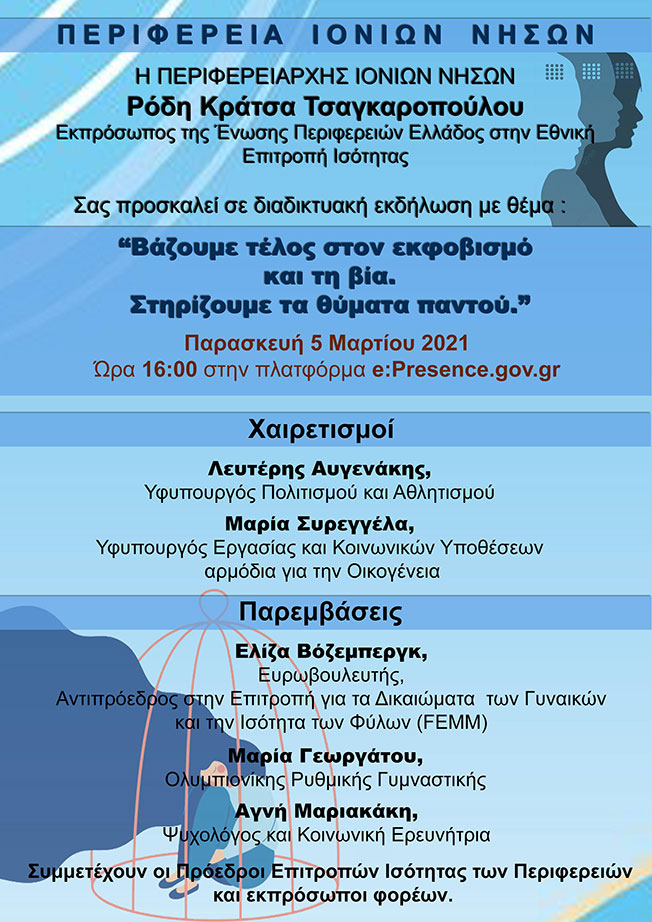 Παρασκευή 5 Μαρτίου 2021 και ώρα 16:00στην πλατφόρμα e:Presence.gov.gr