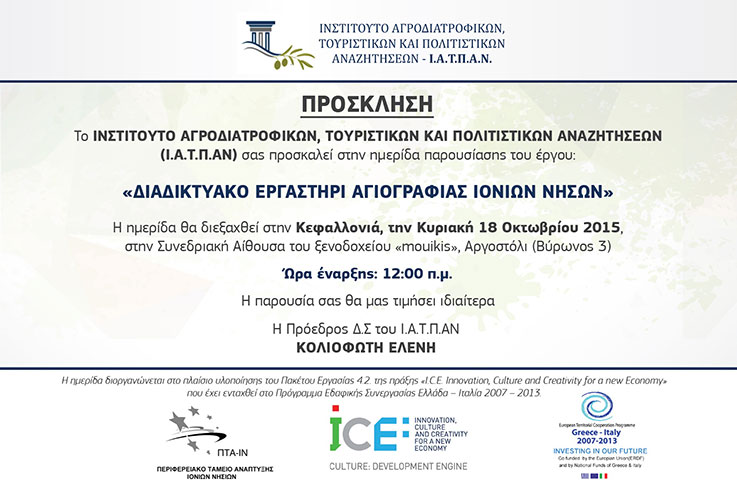 “Διαδικτυακό Εργαστήρι Αγιογραφίας Ιονίων Νήσων”.