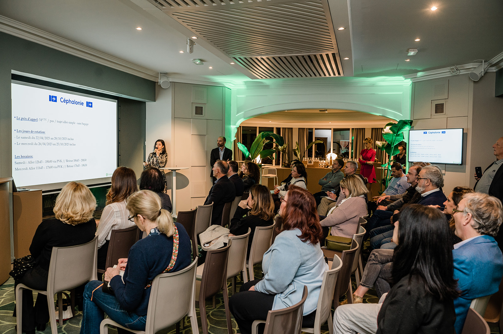 Με αφορμή την απευθείας αεροπορική σύνδεση της Κεφαλονιάς με το Παρίσι, με δυο πτήσεις την εβδομάδα (για την περίοδο 22/04/2023 – 28/10/2023) από την αεροπορική εταιρεία Transavia, η εκδήλωση ανέδειξε το νησί της Kεφαλονιάς, παρουσιάζοντας το εξαίρετο φυσικό κάλλος του, τη γαστρονομική του ταυτότητα, την πλούσια πολιτιστική κληρονομιά του.