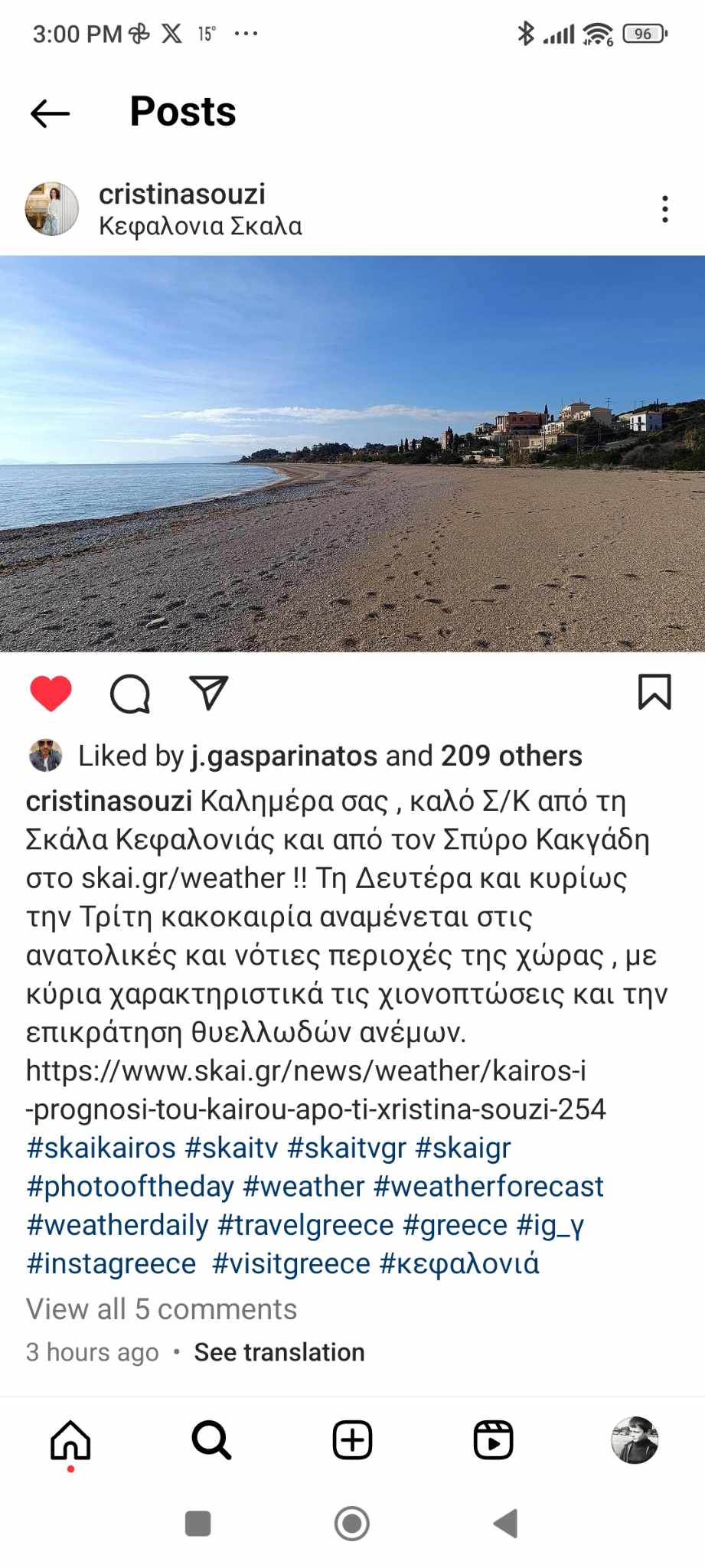 Μάλιστα, η προβολή της Σκάλας δεν περιορίστηκε μόνο στην τηλεόραση του ΣΚΑΪ αλλά η Χριστίνα Σούζη πρόβαλε και στους σχεδόν 22 χιλιάδες ακόλουθους της στο Instagram την φωτογραφία μου από την πανέμορφη Παραλία της Σκάλας!
