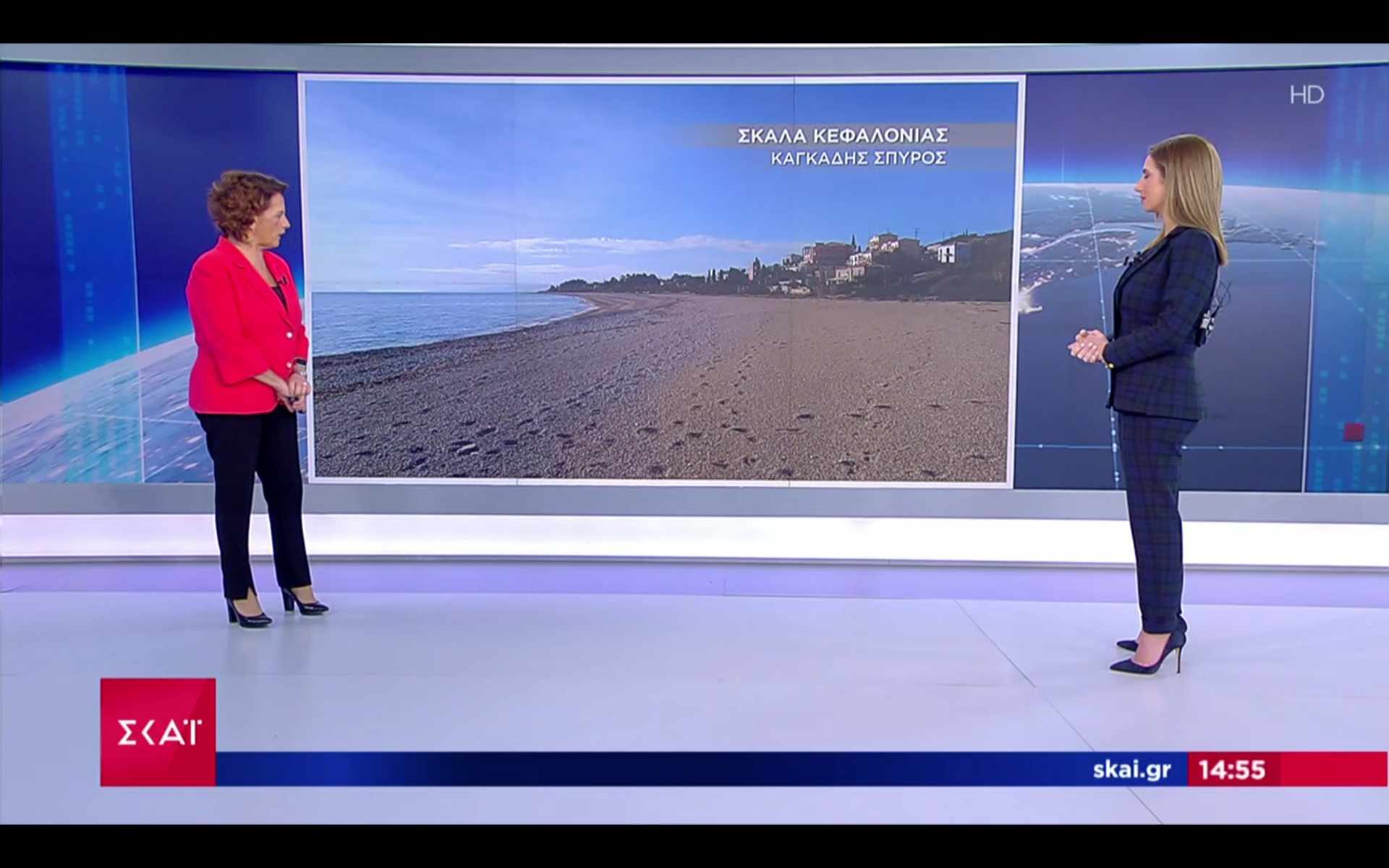 Ευχαριστούμε θερμά την αγαπητή και έγκυρη μετεωρολόγο του ΣΚΑΪ Χριστίνα Σούζη που νωρίτερα σήμερα στο δημοφιλή Μεσημβρινό Δελτίο Ειδήσεων με την έγκριτη παρουσιάστρια Λένα Φλυτζάνη της τηλεόρασης του σταθμού πρόβαλαν φωτογραφία μου από την επίσκεψη μου με τον Αντιδήμαρχο Ελειού Πρόννων και Τουρισμού Νίκο Κουρκουμέλη στην παραδεισένια Παραλία της Σκάλας της Κεφαλονιάς μας!