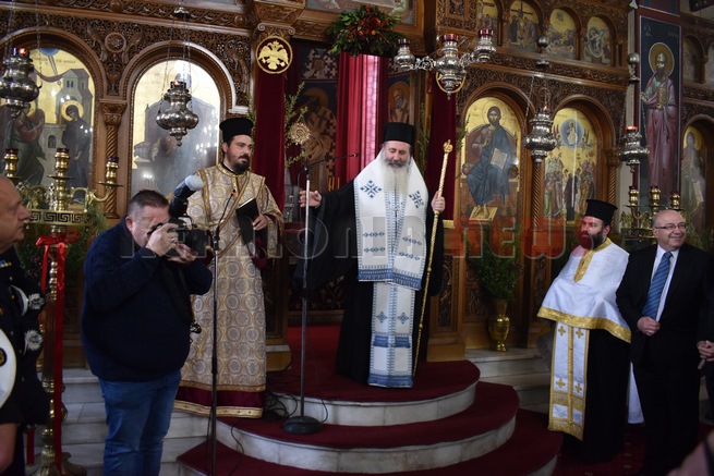 Δοξολογία στον Μητροπολιτικό Ναό Ευαγγελιστρίας για την πρώτη του νέου έτους από τον Μητροπολίτη κ. Δημήτριο. Παρακολούθησε όλη η πολιτική αλλά και η στρατιωτική ηγεσία του τόπου με επικεφαλής το νέο Αντιπεριφερειάρχη κ. Σωτήρη Κουρή.