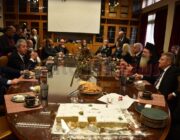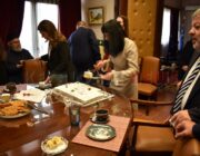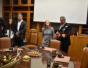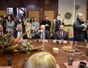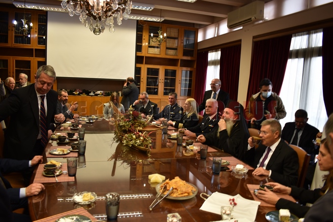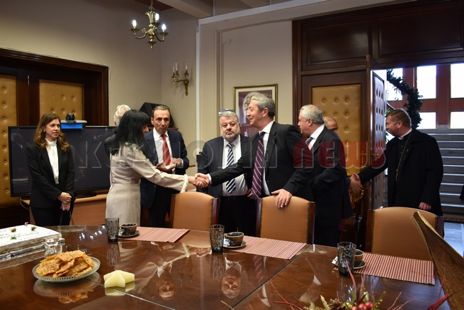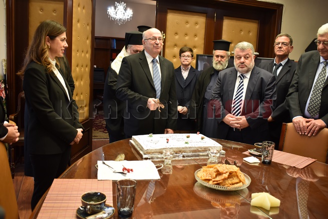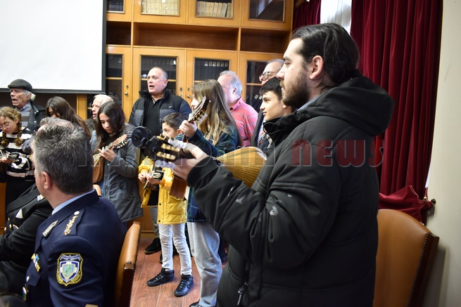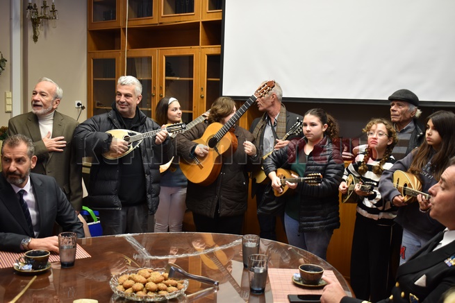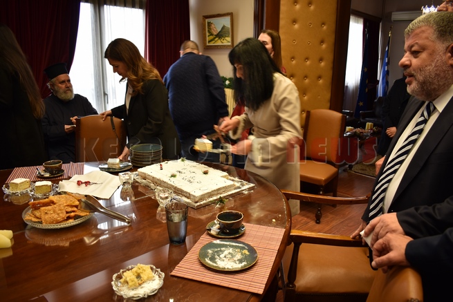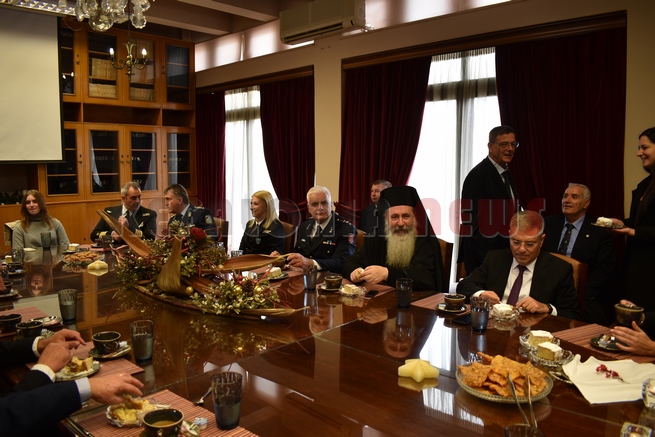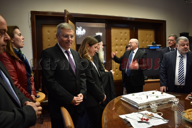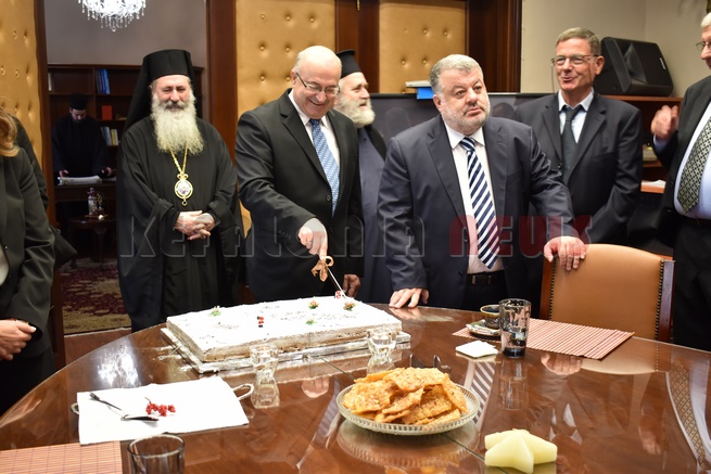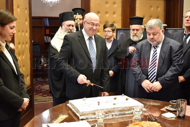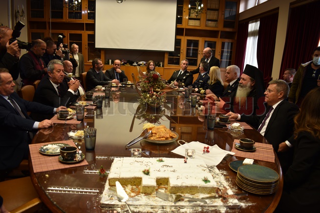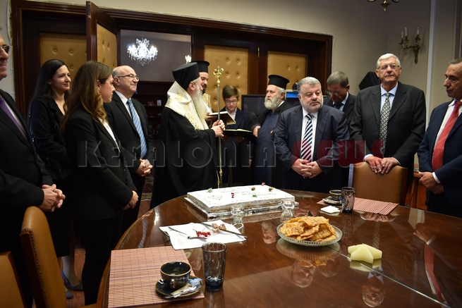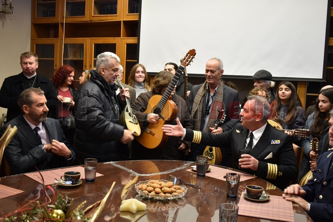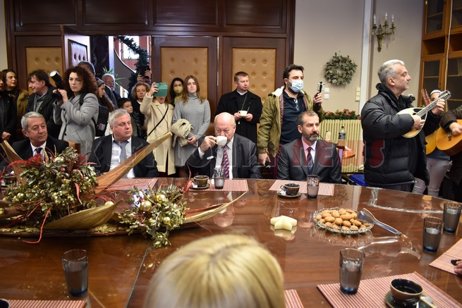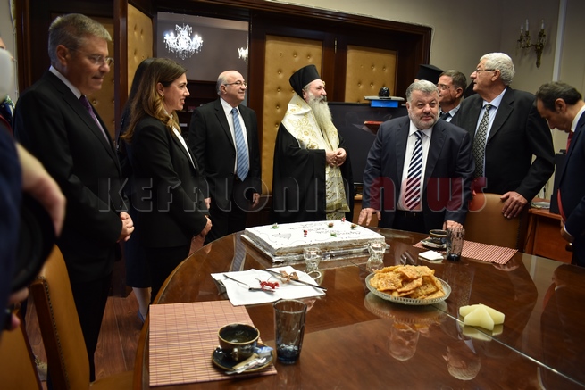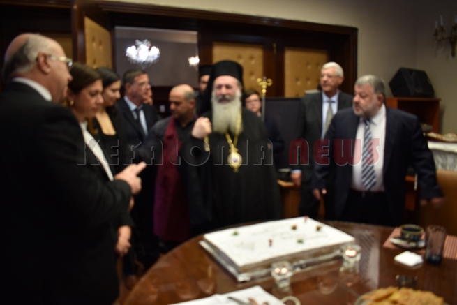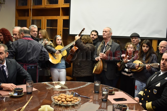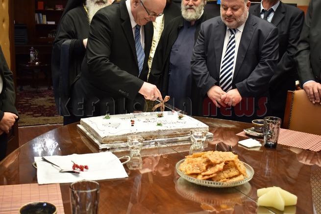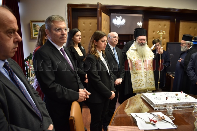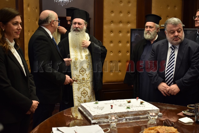 Μετά τη Δοξολογία δόθηκε δεξίωση και κοπή της Πρωτοχρονιάτικης πίτας στην αίθουσα Συνεδριάσεων της Περιφερειακής Ενότητας Κεφαλονιάς. Τραγούδησε εορταστικά τραγούδια της Πρωτοχρονιάς η Παιδική Χορωδία της “Χορωδίας Αργοστολίου και Μαντολινάτας”.