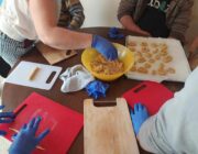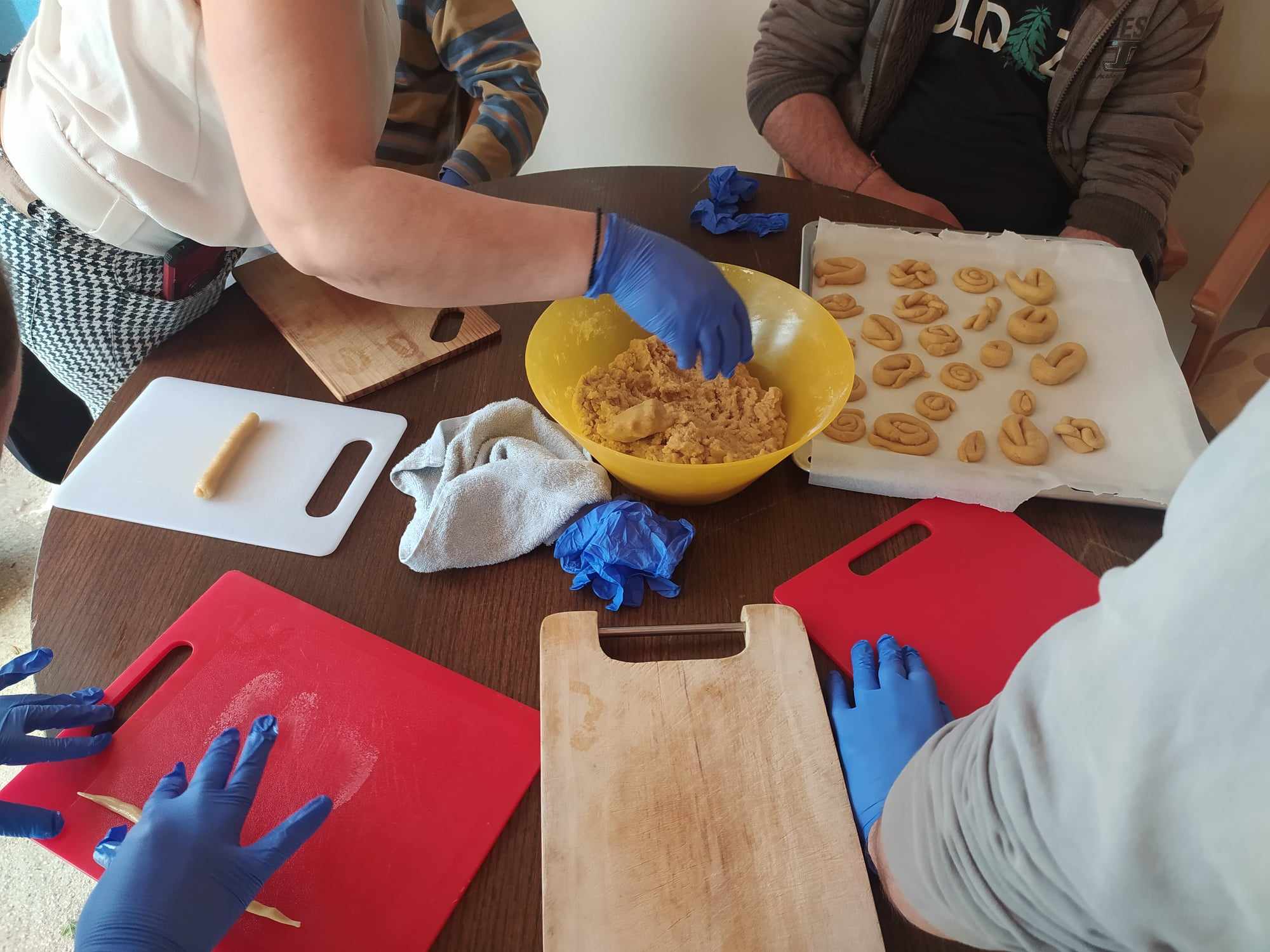 Στη συνέχεια, φτιάξαμε μαζί με τους ωφελούμενους Πασχαλινά κουλουράκια, τα οποία ζυμώσαμε σε διάφορα σχήματα και ψήσαμε στο φούρνο, ενώ οι δραστηριότητες ολοκληρώθηκαν με την παρασκευή λαχταριστής λεμονάδας.