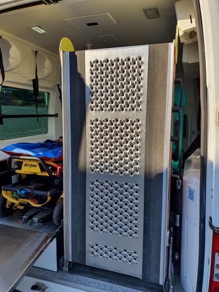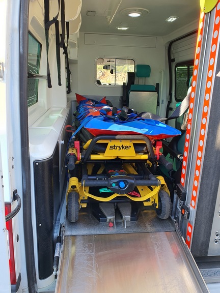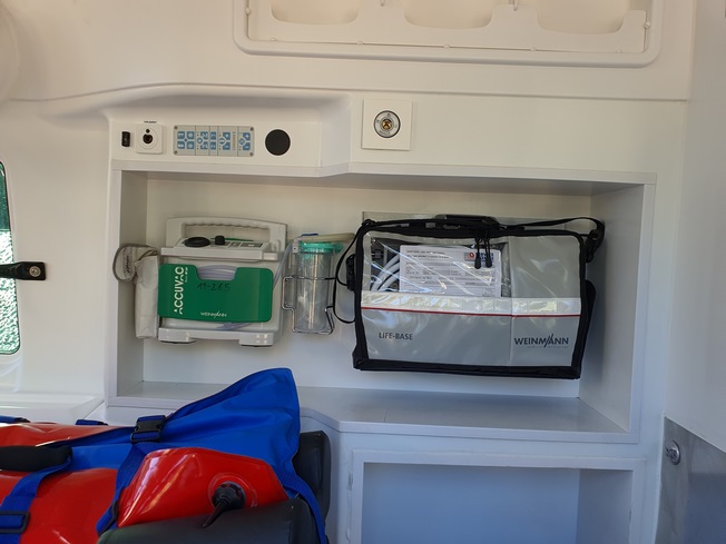 Το όχημα φέρει τελευταίας τεχνολογίας εξοπλισμό (απινιδωτή, αναπνευστήρα, οξυγόνο κλπ).
