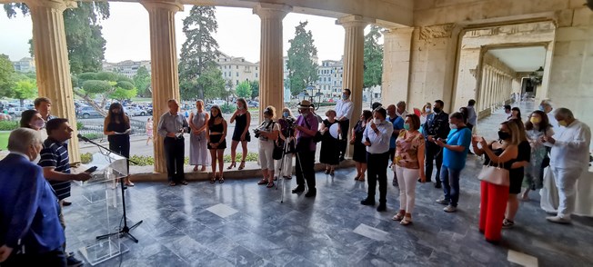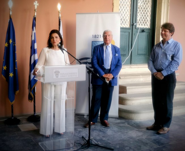 Στα εγκαίνια της έκθεσης, τα οποία πραγματοποιήθηκαν στο περιστύλιο των Παλαιών Ανακτόρων των Αγίων Μιχαήλ και Γεωργίου, χαιρετισμό απηύθυνε η Περιφερειάρχης Ιονίων Νήσων, Ρόδη Κράτσα-Τσαγκαροπούλου, ο Πρόεδρος του Ιδρύματος Κερκυραϊκής Κληρονομίας, Σπύρος Φλαμπουριάρης, ο επιμελητής της έκθεσης, Δρ. Ιστορίας της Τέχνης, Μεγακλής Ρογκάκος και ο Πρόεδρος του Δ.Σ. της Δημοτικής Πινακοθήκης Κέρκυρας, Σπύρος Μωραΐτης.