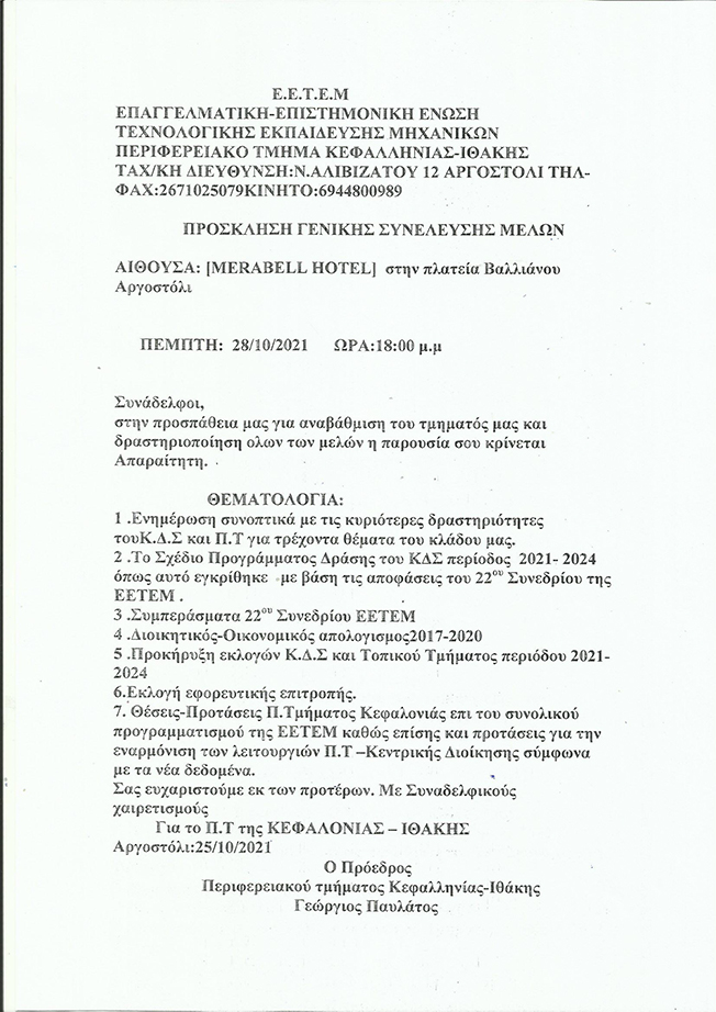 ΕΕΤΕΜ: Πρόσκληση Γενικής Συνέλευσης Μελών