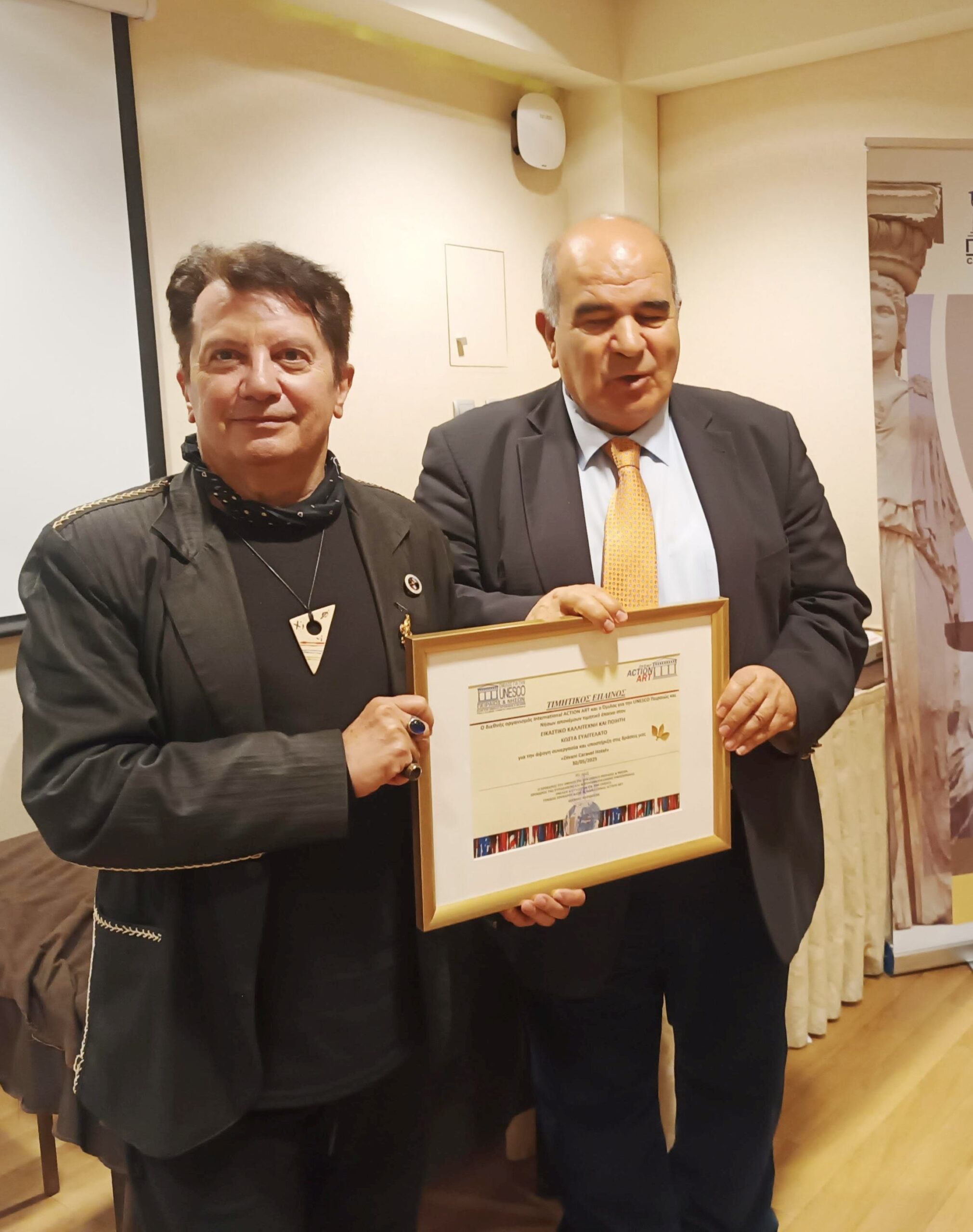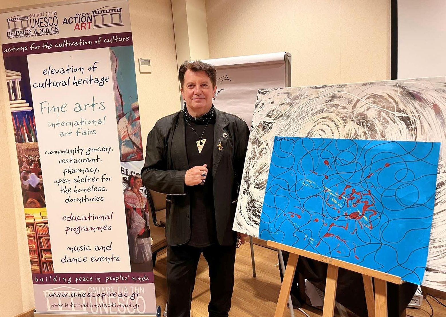 Σε μια βραδιά όπου η τέχνη μίλησε με την γλώσσα της ψυχής, ο διεθνώς αναγνωρισμένος εικαστικός, ζωγράφος, ποιητής, θεωρητικός της σύγχρονης τέχνης  κος Κώστας Ευαγγελάτος καθοδήγησε ένα ξεχωριστό masterclass, υπό την αιγίδα του Ομίλου για την UNESCO Πειραιώς και Νήσων και της Interaction Art και ο χώρος της αίθουσας “Φλώρινα” του Divani Caravel μετατράπηκε σε εργαστήρι έμπνευσης και μάθησης.