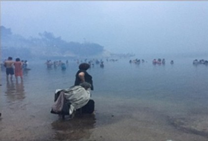 Εχοντας πίσω τους, τον πύρινο όλεθρο και μπροστά τους, την αγριεμένη θάλασσα.