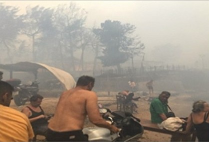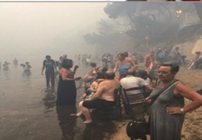Με τις φλόγες να τους κυνηγούν και τους καπνούς να τους τυλίγουν, έντρομοι εκατοντάδες κάτοικοι από τη Νέα Μάκρη, έτρεχαν να σωθούν, πέφτοντας στην θάλασσα.