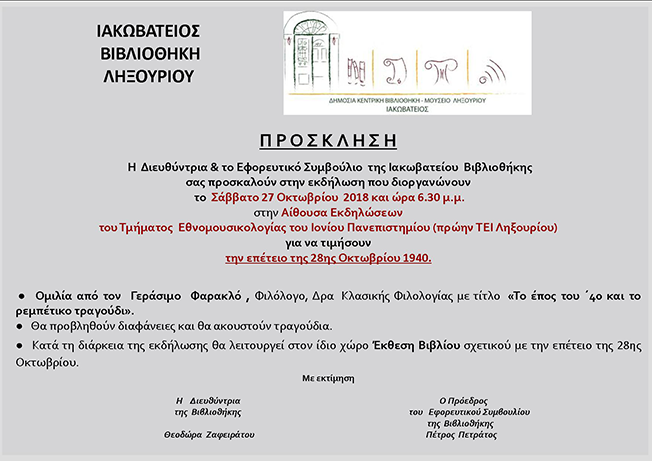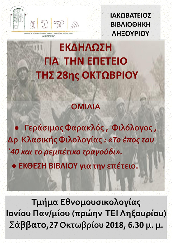 Εκδήλωση από την Ιακωβάτειο Βιβλιοθήκη για την 28η Οκτωβρίου.