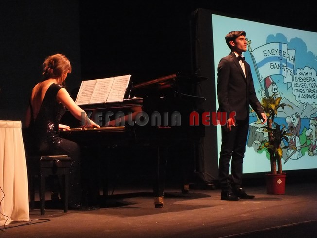 Η Π.Ι.Ν. – Περιφερειακή Ενότητα Κεφαλληνίας– Ιθάκης, ο Σύνδεσμος Φιλολόγων Κεφαλονιάς-Ιθάκης (Σ.Φ.Κ.Ι.) και η  Χορωδία – Μαντολινάτα Αργοστολίου διοργάνωσαν εκδήλωση για την “25η Μαρτίου 1821″ στο Δημοτικό Θέατρο ο ΚΕΦΑΛΟ”, με θέμα:  «Η συμβολή των Επτανησίων και ειδικότερα των Κεφαλονιτών στον αγώνα του 1821». Μίλησε η φιλόλογος κ. Μαρούλη Διαμαντίνα, ΄Εφορος του Δ.Σ. Σ.Φ.Κ.Ι. Ακολούθησε μουσικό πρόγραμμα  «Βραδυά ΄Οπερας» με τους ιταλούς τραγουδιστές (σολίστες) SopranoQ Giorgia Paci, Tenoro: Massimo Montanari, Pianoforte: Tamar Gihuashvili. Παρουσίασε την εκδήλωση ο Ρωσέτος Λούζης