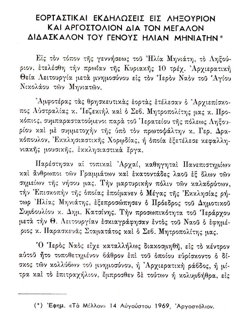 Θα πραγματοποιηθεί Αρχιερατικό Μνημόσυνο για τον μεγάλο ιεροκήρυκα Ηλία Μηνιάτη στο ναό του Αγίου Νικολάου Μηνιατών