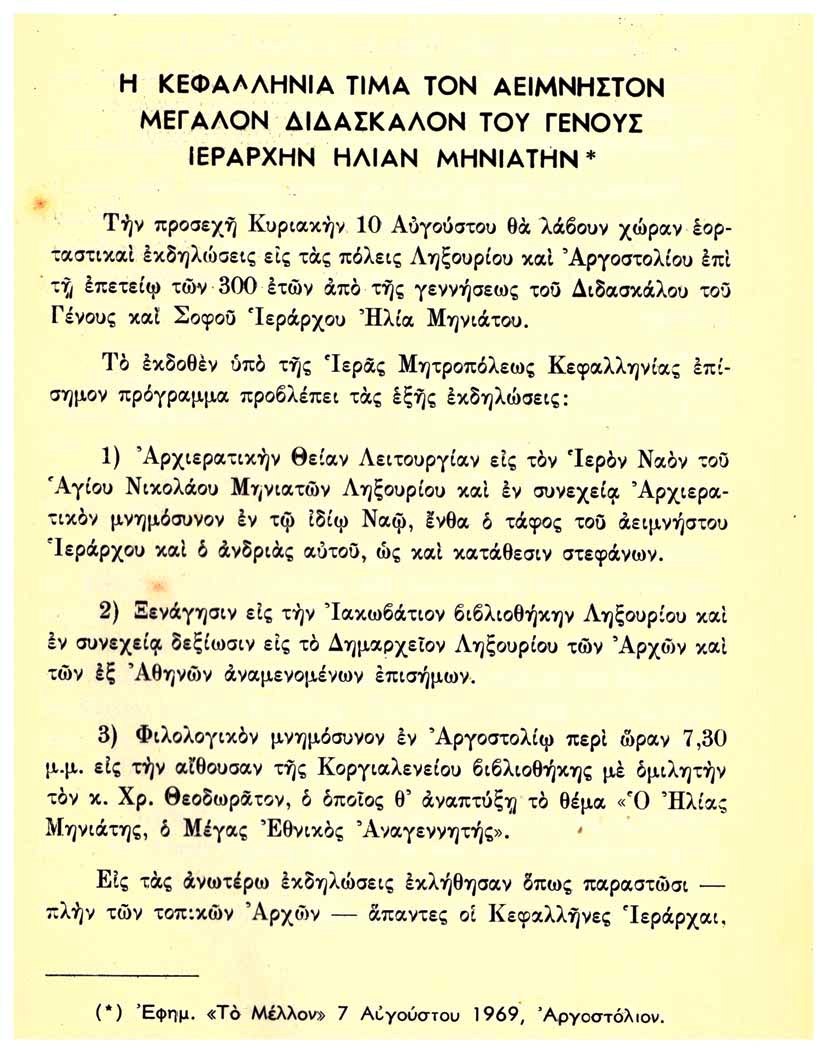 Εκδήλωση για τον Ηλία Μηνιάτη στο Ληξούρι