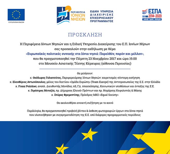 Εκδήλωση με θέμα “Ευρωπαϊκές  πολιτικές συνοχής  στα Ιόνια Νησιά: Παρελθόν, παρόν και μέλλον”