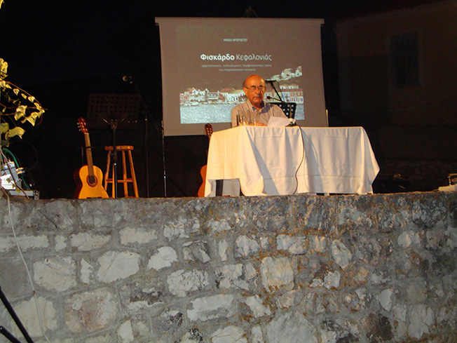 Κάνοντας την έναρξη η κα Κουλουμπαρίτση αναφέρθηκε στους ομιλητές και γενικά στο πρόγραμμα ενώ ετόνισε την συμβολή και χρησιμότητα του βιβλίου για την προστασία και προβολή του Φισκάρδου. Στη συνέχεια έλαβε το λόγο ο ιστορικός και ομότιμος διευθυντής ερευνών του Εθνικού Ιδρύματος Ερευνών κ. Νίκος Μοσχονάς ο οποίος ήταν ο κύριος ομιλητής και έκανε μια συστηματική και κατατοπιστική παρουσίαση του βιβλίου. (Η ομιλία του παρατίθεται αυτούσια στο τέλος). Μετά ο λόγος δόθηκε στην αρχαιολόγο, αναπληρώτρια προϊσταμένη της Εφορίας αρχαιοτήτων Κεφαλληνίας κα Ελένη Παπαφλωράτου η οποία αναφέρθηκε στα κρίσιμα αρχαιολογικά θέματα του Φισκάρδου που συνδέονται άμεσα με την δομή και λειτουργία του οικισμού και χαιρέτισε την έκδοση του βιβλίου που θίγει και τα ζητήματα αυτά.