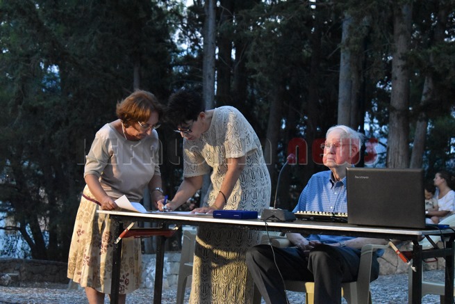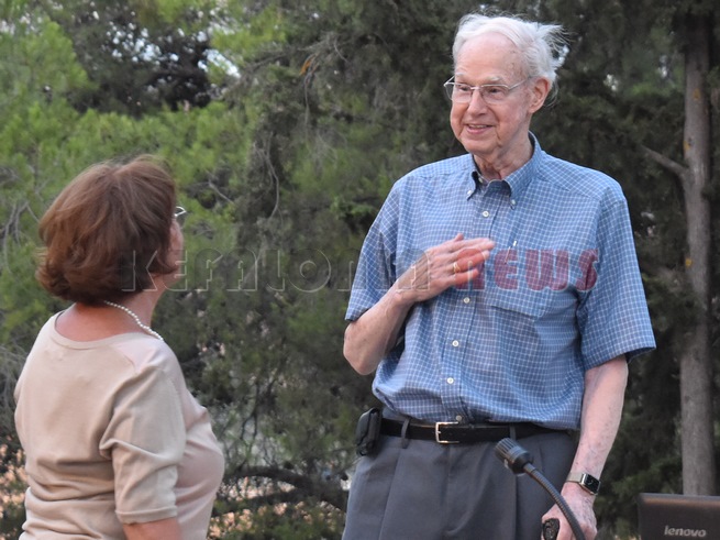 Ένα αφιέρωμα για τους σεισμούς του 1953, διαφορετικό απ’ όσα παρακολουθήσαμε μέχρι σήμερα. Εκδήλωση προς τιμή του Αμερικανού ναύτη Ralph Quinn που βρέθηκε τις ημέρες του σεισμού στην Κεφαλονιά με το πολεμικό πλοίο που υπηρετούσε. Συγκίνηση και θύμισες από τον ίδιο, το ίδιο κι από τον Μητροπολίτη κ. Δημήτριο και τον Δήμαρχο κ. Θ. Μιχαλάτο. Μίλησαν για τον Αμερικανό ναύτη η κ. Δώρα Μαρκάτου και η Θεοτοκούλα Μουλινού. Μίλησε και ο ίδιος ο Ralph Quinn σε μετάφραση της κ. Θ. Μουλίνου. Τιμήθηκε με πλακέτες από το Κοργιαλένειο Ίδρυμα, τον Μητροπολίτη κ. Δημήτριο και τον Δήμαρχο. Θ. Μιχαλάτο. Στο τέλος η Γυναικεία Χορωδία της Χορωδίας Αργοστολίου τραγούδησε Κεφαλονίτικα Τραγούδια και παρακολουθήσαμε χορευτικά από τον Σύλλογο “ΙΟΝΙΟΣ ΠΝΟΗ” από τον Ληξούρι, σε μια υπέροχη μουσικοχορευτική παρουσία.