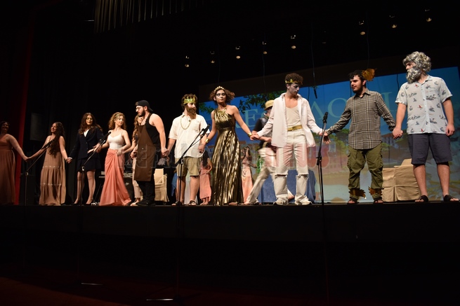 ΑΡΣΙΝΟΗ (Αργοστολιώτισσα): Αναστασία Γαβρίλη ΥΑΚΙΝΘΗ (Αργοστολιώτισσα): Χαρά Παγουλάτου ΝΥΜΦΕΣ : Μελίνα Μεσσολωρά, Κλειώ Μιχαλάτου ΠΑΝΑΗΣ (Κεφαλονίτης βοσκός): Γεράσιμος-Σάββας Μιχαλάτος