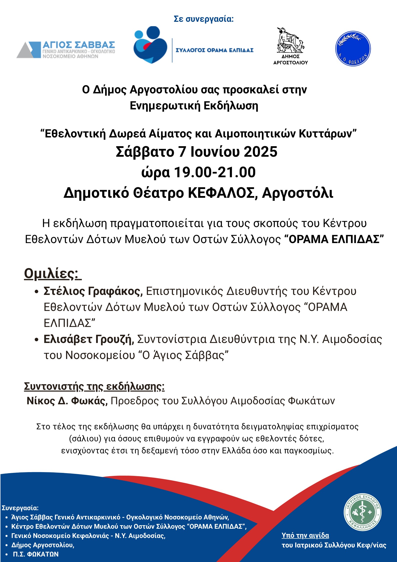 Ενημερωτική εκδήλωση “Εθελοντική Δωρεά Αίματος και Αιμοποιητικών Κυττάρων” στο Αργοστόλι