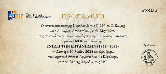 ΕΚΔΗΛΩΣΗ ΓΙΑ ΤΗΝ ΕΝΩΣΗ ΤΩΝ ΕΠΤΑΝΗΣΩΝ (1864 – 2024)