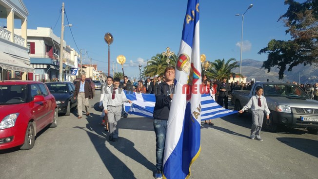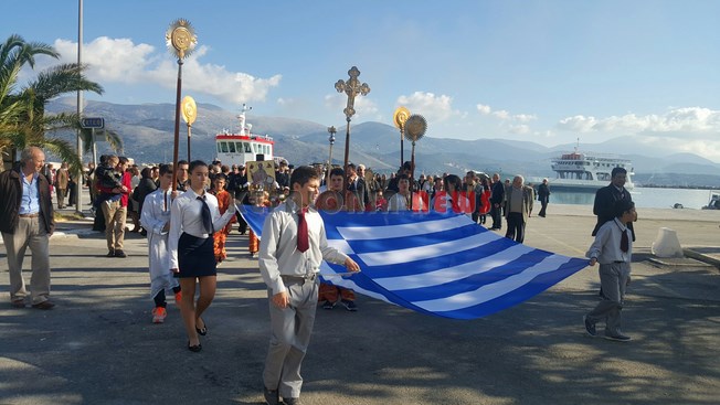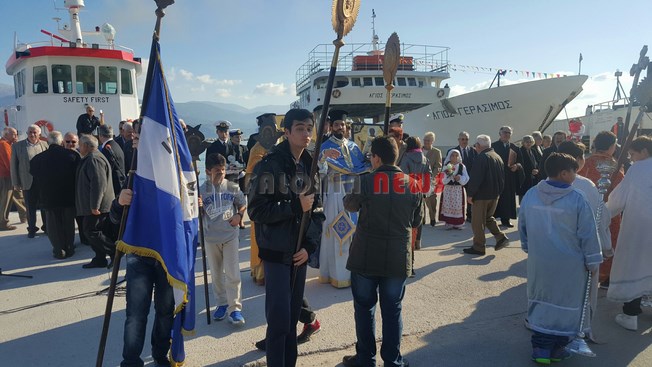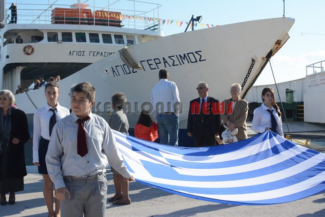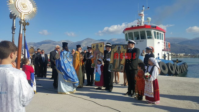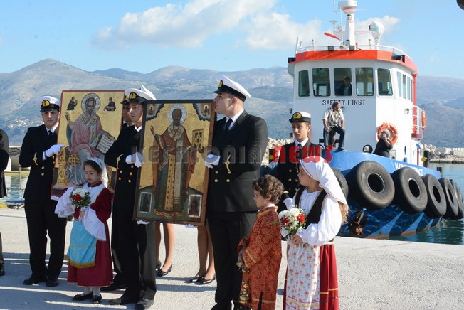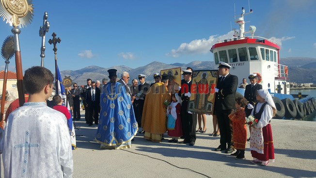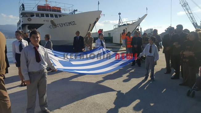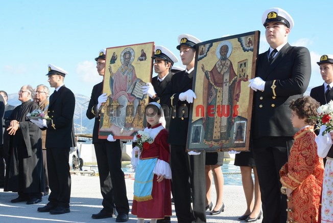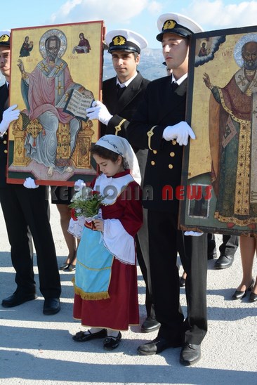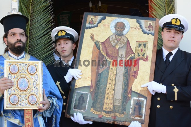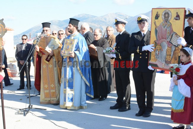 Μαθητές των Δημοτικών Σχολείων της πόλης μας κρατώντας την Ελληνική Σημαία και Σπουδαστές της ΑΕΝ να κρατούν τις Εικόνες του Αγίου, στάθηκαν μπροστά στο φέρυ μπωτ, όπου ευχαρίστησαν τον Άγιο Νικόλα και ευχήθηκαν στους Ναυτικούς μας καλές θάλασσες.