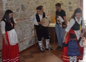 Μετά από τις ομιλίες και την ανταλλαγή αναμνηστικών, στην μικρή αλλά φιλόξενη αίθουσα του συλλόγου στον πρώτο όροφο, ακολούθησε γεύμα στο εστιατόριο που βρίσκεται στο ισόγειο του παστρικού αλλά φτωχικού οικήματος. Εκεί μας διασκέδασε με τοπικούς χορούς και μουσική το συγκρότημα του τοπικού συλλόγου. Μετά τη μικρή επίδειξη μπήκαμε και εμείς στο χορό. Η ατμόσφαιρα που δημιουργήθηκε ήταν μοναδική.
