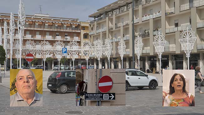 ΣΤΙΣ ΦΩΤΟΓΡΑΦΙΕΣ: Α. Η κεντρική πλατεία της κωμόπολης Καλημέρα. Στις ένθετες ο Βίτο Μπεργκάμο, η πινακίδα (στο δρόμο που αρχίζει από την κεντρική πλατεία) με την ελληνική επιγραφή «ΛΑΟΓΡΑΦΙΚΟ ΜΟΥΣΕΙΟ» και η Άννα Μαρία Κιριέντι. Β. Ένα από τα πολλά υπόγεια λιτρουβιά στη Στερνατία. Στην ένθετη ο Τζιώρτζιο Βισέντζο Φιλιέρι. Γ. Η αψίδα που περνάς για να πας στην παλιά πόλη του Λέτσε και στην ένθετη το Ρωμαϊκό Αμφιθέατρο που βρίσκεται στην κεντρική πλατεία.