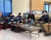 Επίσης, μετέβησαν στην Πυροσβεστική Υπηρεσία Αργοστολίου όπου συνομίλησαν με το Διοικητή της κ. Κωνσταντίνο Σωτηρίου, με πυροσβέστες καθώς και με μέλη εθελοντικών ομάδων δασοπυρόσβεσης. Κύρια ζητήματα, η ανάγκη μετεγκατάστασης της Υπηρεσίας σε ένα πιο σύγχρονο χώρο, η στέγαση των οχημάτων, η ενδυνάμωση του πυροσβεστικού σώματος αλλά και τα μισθολογικά αιτήματα των πυροσβεστών.