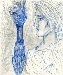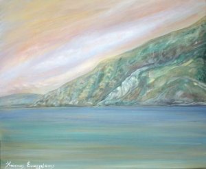 Ακούραστος μεταλλωρύχος στου χρόνου τ’ ορυχείο, στων λεξικών τα σώματα. Συνέχεια βλέπω πάμφωτα κύματα – σώματα απ’ τη ζωγραφική του. Φυσική παρουσία και η τέχνη του, προσωποποίηση του Ιόνιου κάλλους.