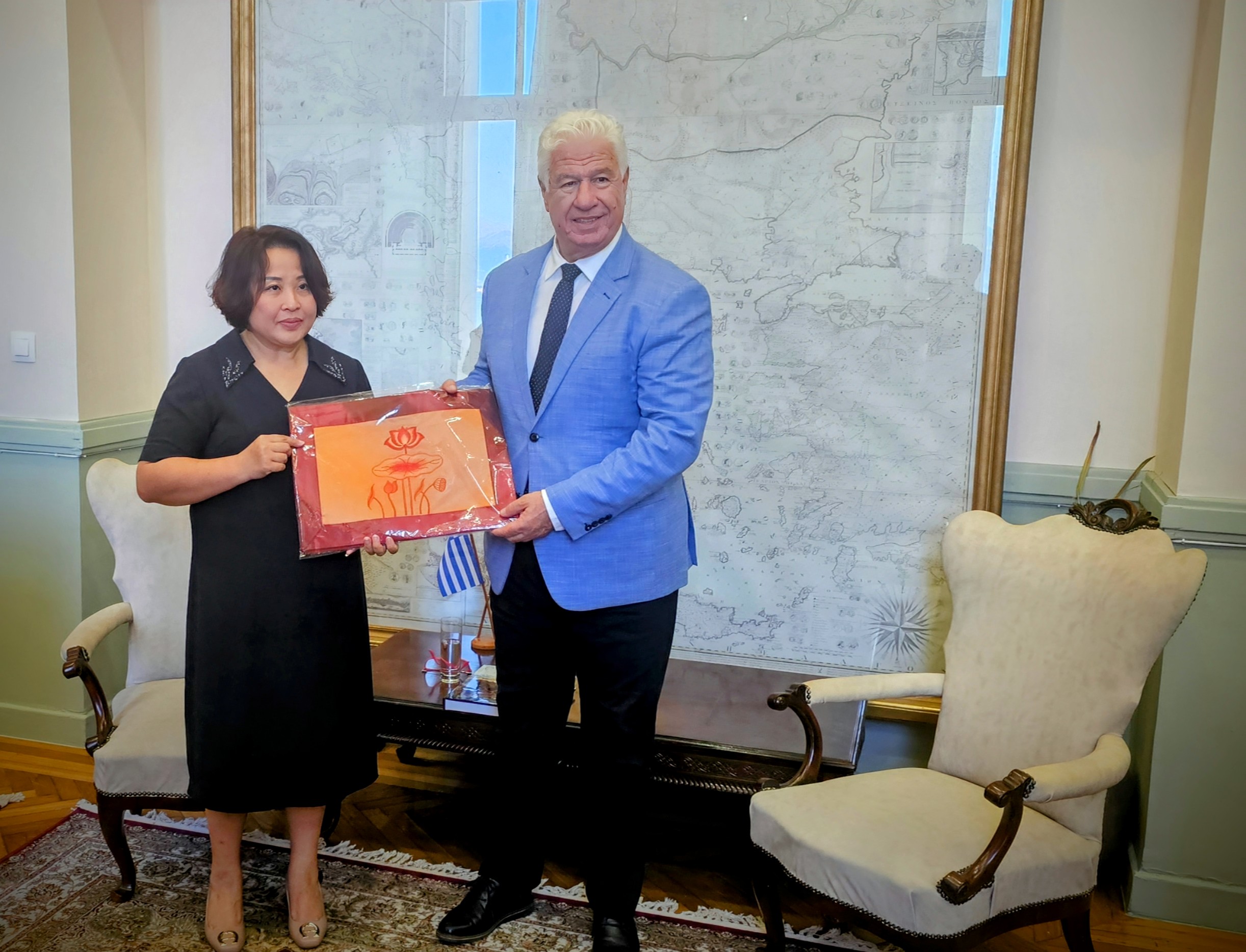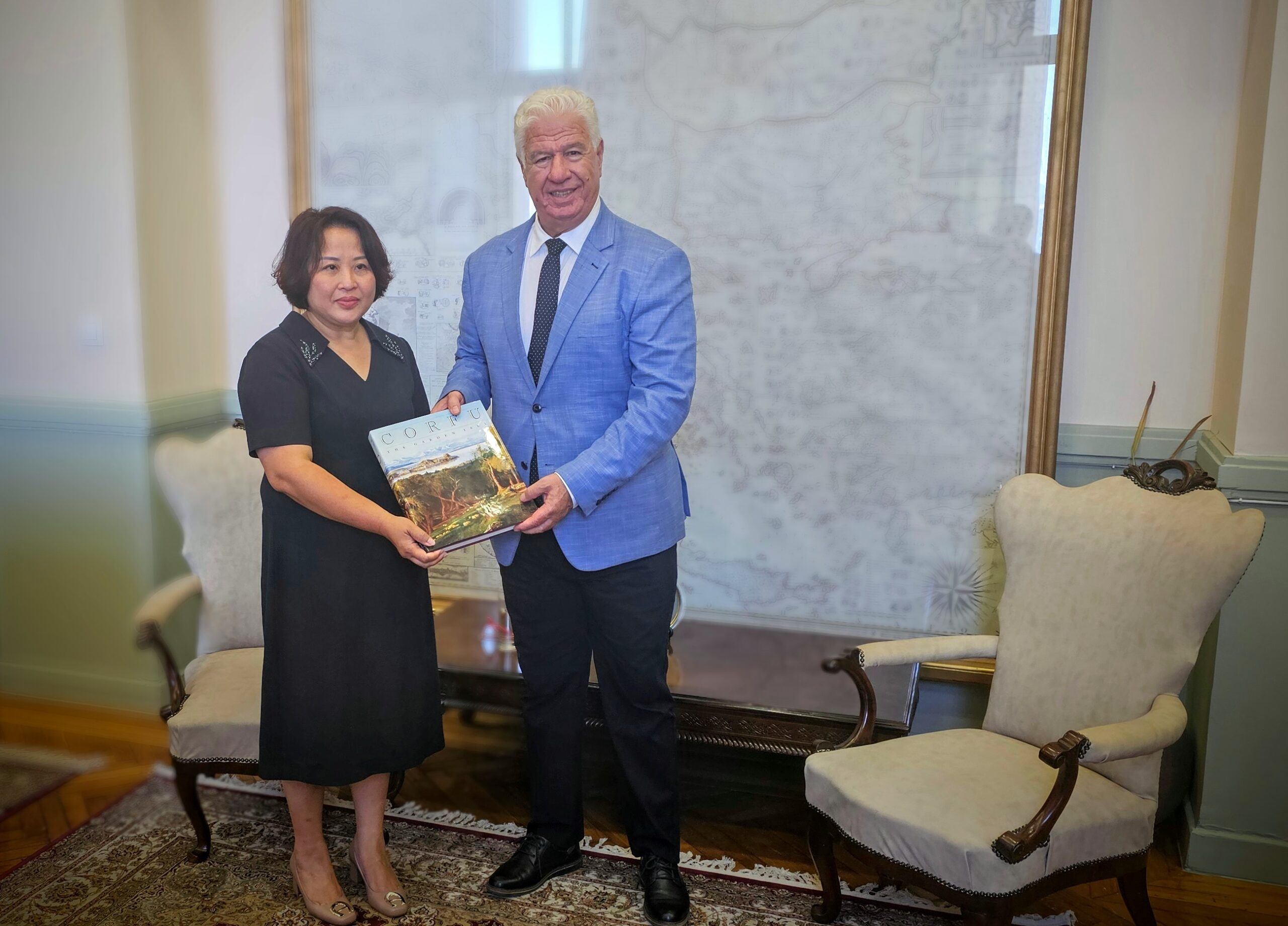 Tον Περιφερειάρχη Ιονίων Νήσων, Γιάννη Τρεπεκλή, επισκέφθηκε την Πέμπτη 17 Ιουλίου 2025, στο γραφείο του στην έδρα της Περιφέρειας, στην Κέρκυρα, η Πρέσβειρα της Σοσιαλιστικής Δημοκρατίας του Βιετνάμ στην Αθήνα, Pham Thi Thu Huong.