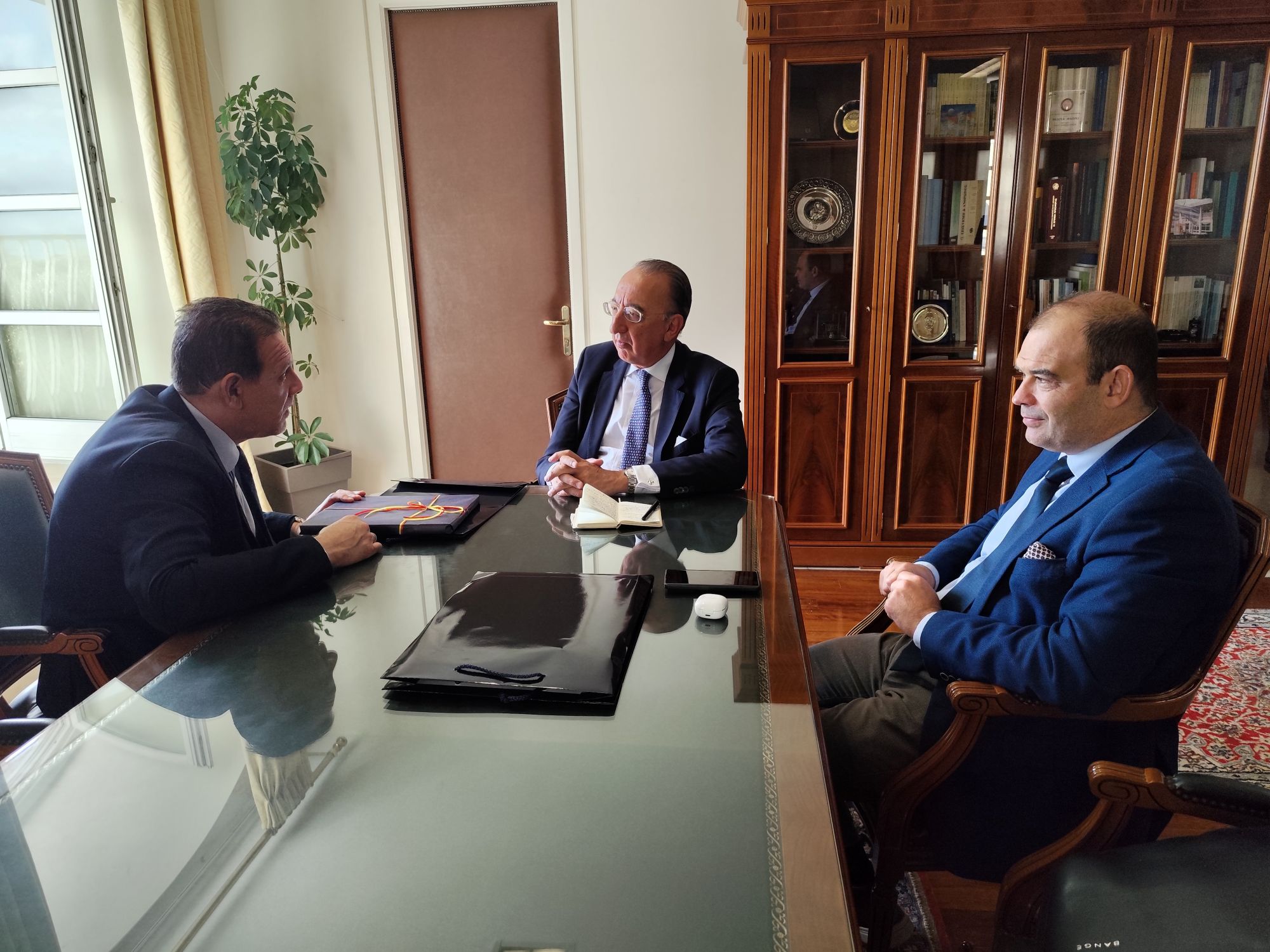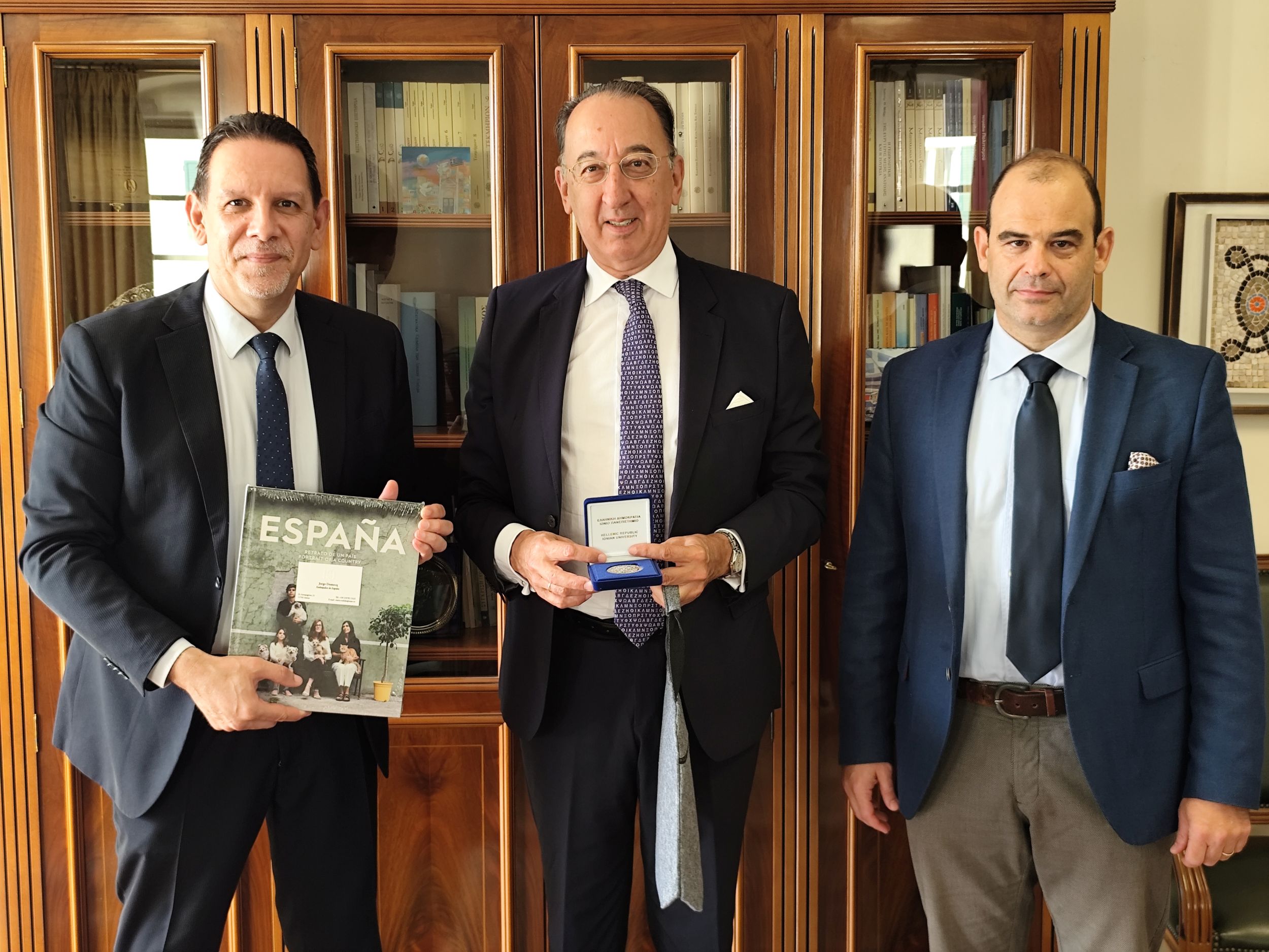 Λεζάντα φωτογραφίας (από αριστερά προς τα δεξιά): ο Πρύτανης του Ιονίου Παν/μίου, Καθ. Ανδρέας Φλώρος, ο Πρέσβης της Ισπανίας στην Ελλάδα, κ. Jorge Domecq, και ο Επίτιμος Πρόξενος της Ισπανίας στην Κέρκυρα, κ. Σπύρος Δραγομάνοβιτς.