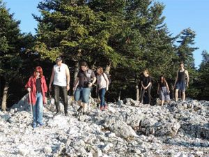 Στην συνέχεια, το προσωπικό συνόδευσε τους επισκέπτες στο μονοπάτι “Χιονίστρα-Περιβαλλοντικό Κέντρο Αίνου”. Κατά την πεζοπορία, οι απόδημοι νέοι είχαν την ευκαιρία να ενημερωθούν για την προστατευόμενη περιοχή του Εθνικού Δρυμού Αίνου, να γνωρίσουν το δάσος της κεφαλληνιακής Ελάτης, και να εξοικειωθούν με το φυσικό περιβάλλον και την βιοποικιλότητα του Εθνικού Δρυμού Αίνου, απολαμβάνοντας ταυτόχρονα και τη θέα προς την Ζάκυνθο.