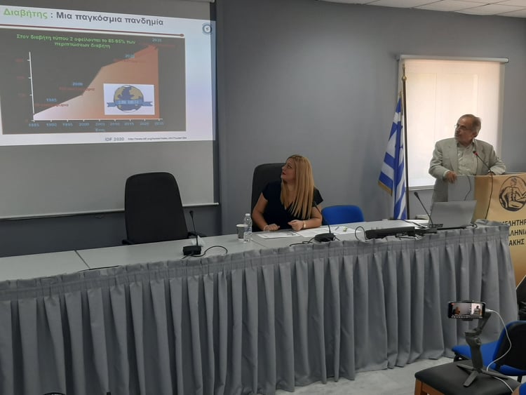 Στη συνέχεια ο Παθολόγος κύριος  Γιώργος Χριστοδουλάκης πραγματοποίησε παρέμβαση – τοποθέτηση για περιστατικά ασθενών με πολλούς παράγοντες κινδύνου με διαβήτη και επιπλοκές με καρδιακή και νεφρική ανεπάρκεια. Ο κύριος Χριστοδουλάκης απέδειξε στην κλινική πράξη πως μπορούν να εφαρμοσθούν οι κατευθυντήριες οδηγίες θεραπείας των μεταβολικών νοσημάτων με σκοπό την βέλτιστη αντιμετώπιση των ασθενών.