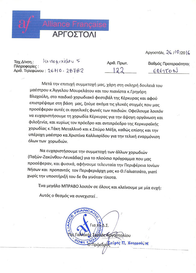 Επιτυχημένη η παρουσία στο Φεστιβάλ Χορωδιών στην Κέρκυρα