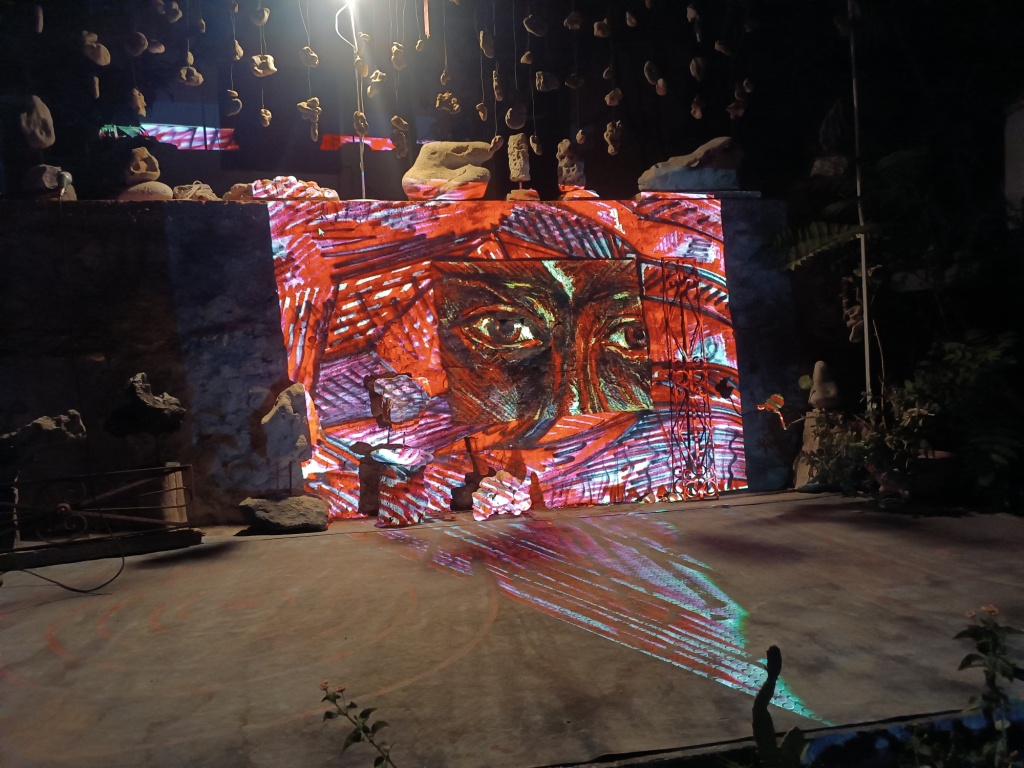 Η τεχνική εγκατάσταση στην ΜΩΒ ΣΚΗΝΗ του οπτικοποιητικού δρώμενου ήταν ευγενική προσφορά του Εργατικού Κέντρου Κεφαλονιάς.