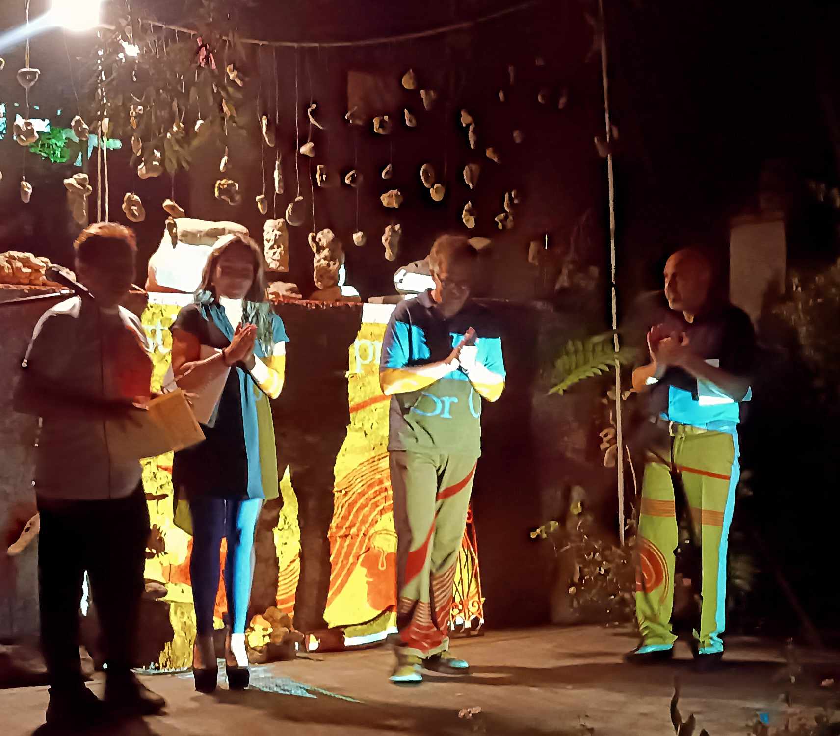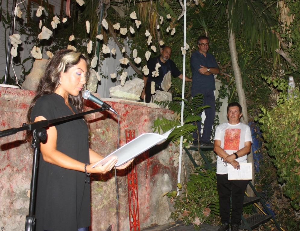 Παρόντες εκπρόσωποι της πολιτικής, του τύπου και της κοινωνικής ζωής, επιστήμονες, καλλιτέχνες, λογοτέχνες και πολλοί φιλότεχνοι παραθεριστές. Μετά το πέρας της άκρως ποιοτικής, εντυπωσιακής, υποβλητικής και συγκινητικής performance έγινε ξενάγηση στην επετειακή εικαστική έκθεση και ακολούθησε κέρασμα υπό το δυνατό φως της αυγουστιάτικης πανσελήνου στον κατάφυτο κήπο της τέχνης.