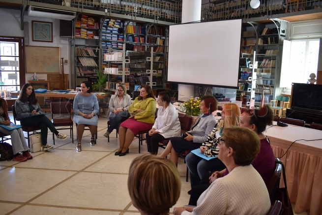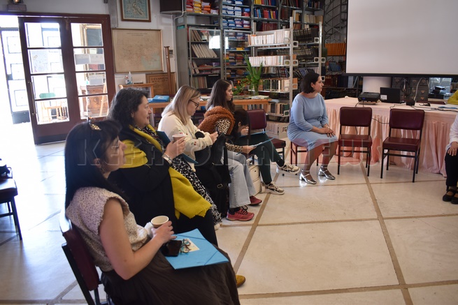 Σήμερα στις 10.00 το πρωί στην Κοργιαλένειο Βιβλιοθήκη έδωσαν το παρών αρκετά μέλη και φίλοι του Λυκείου Ελληνίδων, όπου η κ. Λίλη Λαμπρέλλη συγγραφέας, αφηγήτρια παραμυθιών μίλησε με θέμα: “Προσέγγιση στο λαϊκό παραμύθι και στην τέχνη της αφήγησης.