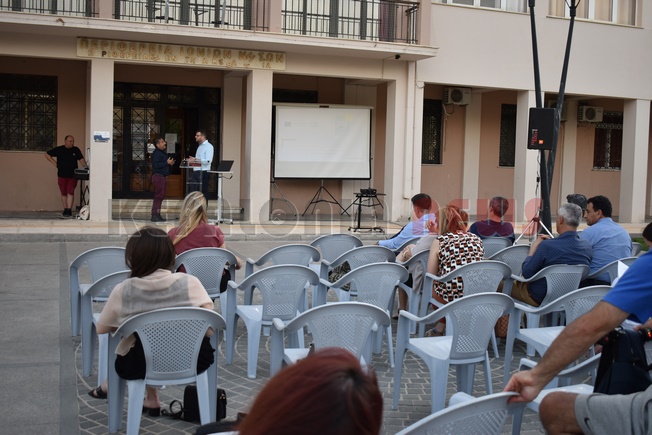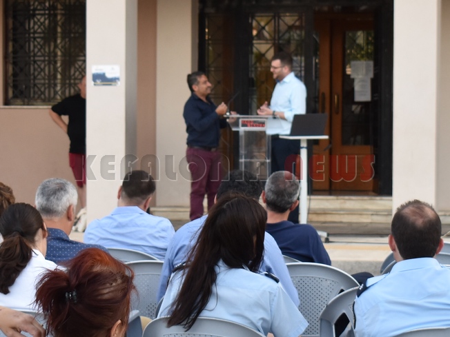 Χαιρέτησε ο Αντιπεριφερειάρχης Περιφερειακών Ενοτήτων Κεφαλληνίας και Ιθάκης, κ. Σταύρος Τραυλός και ο Αντιδήμαρχος κ. Γιώργος Τσιλιμιδός. Ακολούθησε ομιλία από τον κ. Ιωάννη Παγκέ, Διδάκτορα Παν. Ιωαννίνων, Θέμα Εισήγησης: «Περιβαλλοντική Συμπεριφορά, Κυκλική Οικονομία και Νέα Πρότυπα Διαχείρισης Στερεών Αποβλήτων». Στο τέλος της ομιλίας έγιναν κάποιες παρεμβάσεις, όπως του κ. Κώστα Πρέντζα ηλεκτρολόγο – μηχανικό αλλά και επιθεωρητής στις Γαλάζιες σημαίες. Εκεί ήταν και ο καθηγητής κ. Νίκος Φαραντούρης….