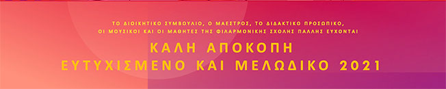 Το 2020 ήταν ένα δύσκολο έτος. Μέσα σε αυτό το περιβάλλον, η Φιλαρμονική Σχολή Πάλλης, η αρχαιότερη μουσική σχολή της Ελλάδας, συνέχισε το από το 1836 μορφωτικό της έργο, στο μέτρο του δυνατού και σεβόμενη τις οδηγίες για τη διαφύλαξη της δημόσιας υγείας.
