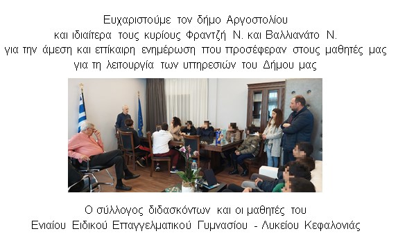 Ευχαριστίες από το Σύλλογο Διδασκόντων και μαθητές του Ενιαίου Ειδικού Επαγγελματικού…