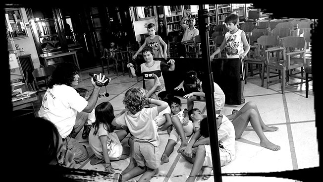 Στα πλαίσια του προγράμματος Καλοκαιρινής Εκστρατείας Ανάγνωσης και Δημιουργικότητας 2015 υπήρχε η δράση «εδώ δεν είναι βιβλιοθήκη… είναι μια μηχανή του χρόνου – η εποχή του βωβού κινηματογράφου». Λόγω της απαιτητικότητας του προγράμματος κλήθηκε εκ μέρους μας ο συμπατριώτης μας σκηνοθέτης/ ηθοποιός/ εικαστικός Γεώργιος Κακής – Κωνσταντινάτος, του οποίου είναι γνωστή η παρουσία του στη βιβλιοθήκη μας για μελέτη όταν βρίσκεται στο Νησί μας. Δέχτηκε λοιπόν να διεκπεραιώσει τη δράση του κινηματογράφου, μια από της μεγαλύτερες                         (διαρκούσε 3 ημέρες, έναντι 1 που ήταν οι άλλες) και από τις πλέον απαιτητικές, κανείς όμως δεν μπορούσε να φανταστεί ότι θα είχε αυτό το αποτέλεσμα…
