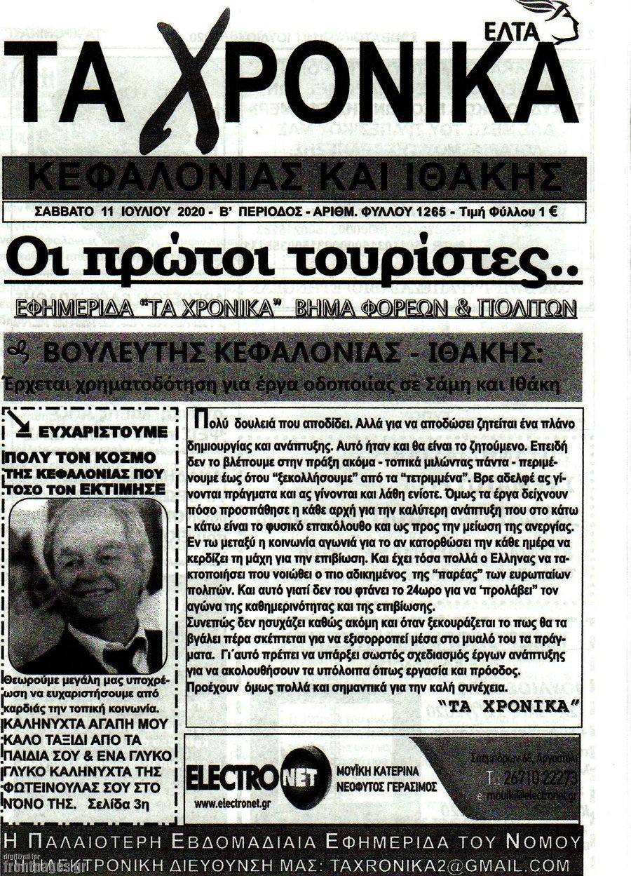Μέχρι τις αρχές της δεκαετίας του 1990, (1991 θαρρώ) οπότε κυκλοφόρησε ο (καθημερινός) ΗΜΕΡΗΣΙΟΣ, η Κεφαλονιά δεν είχε καθημερινή εφημερίδα. Ανάμεσα σε αρκετές άλλες εφημερίδες, μηνιαίες, δεκαπενθήμερες, που δεν κατάφερναν να έχουν μεγάλη διάρκεια ζωής, Τα ΧΡΟΝΙΚΑ τυπώνονταν στο νησί και αποτέλεσαν σταθερή αξία, επί σχεδόν μισό αιώνα. Έντυπα άνοιγαν κι έκλειναν, κυβερνήσεις και τοπικοί άρχοντες ανεβοκατέβαιναν, άνοιξαν ραδιόφωνα, κανάλια, ιστοσελίδες, αλλά ΤΑ ΧΡΟΝΙΚΑ ήταν πάντα εκεί.
