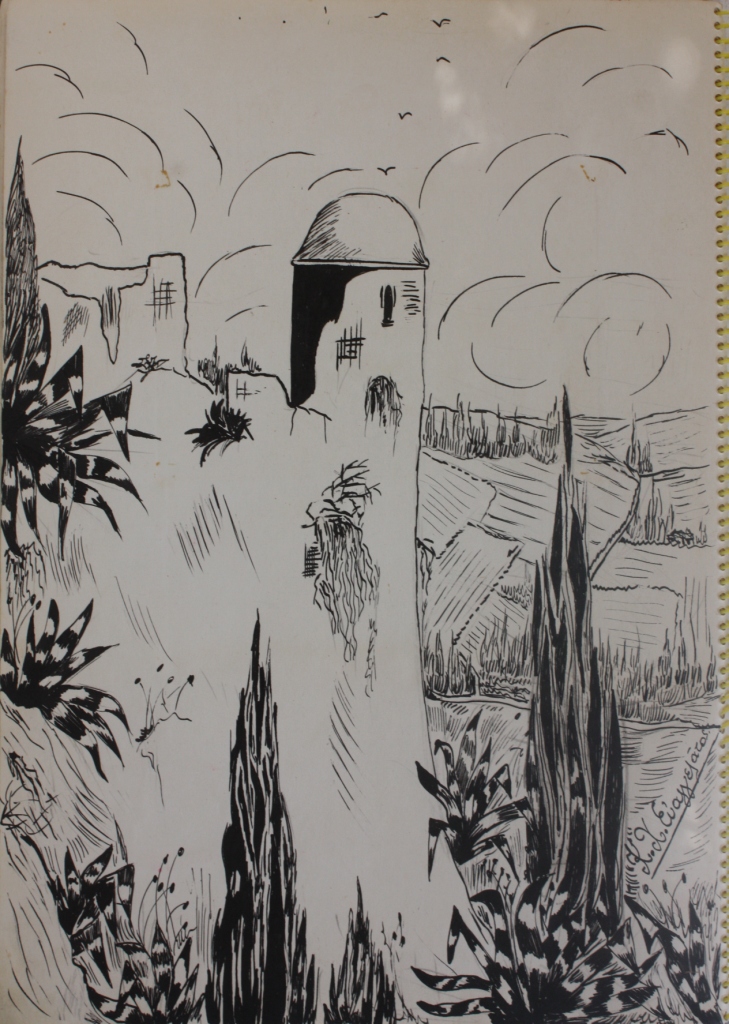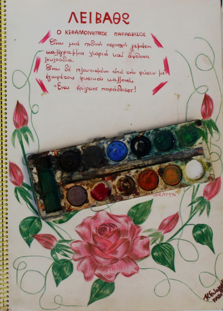Κύρια όμως είχα αφήσει κάποια ατελείωτα σχεδιάσματα στα δύο καλλιτεχικά σχολικά λευκώματα, τα οποία επί χρόνια είχαν παραμείνει στα γραφεία του Οικονομικού Γυμνασίου στο Αργοστόλι και που από καλή τύχη βρήκε και διέσωσε ο φίλος καθηγητής κ. Λάμπρος Σιμάτος, ο οποίος μου τα παρέδωσε ευγενικά, όταν επανέκαμψα στο Αργοστόλι το 2000 για να διαμορφώσω τους εκθεσιακούς χώρους και τον κήπο της Villa Ροδόπη.