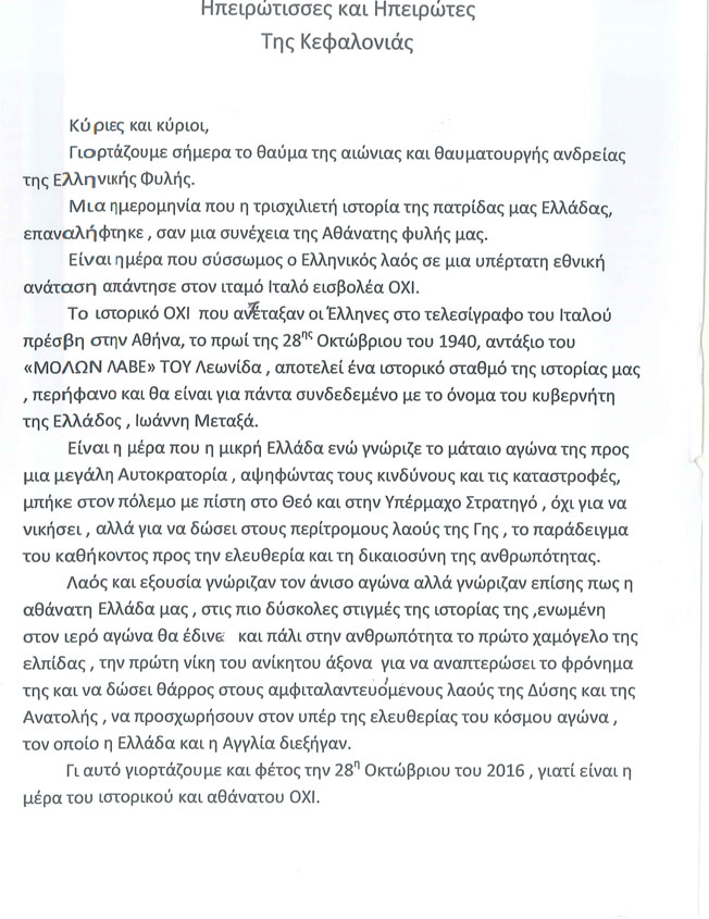 Μήνυμα Δημάρχου για την 28η Οκτωβρίου