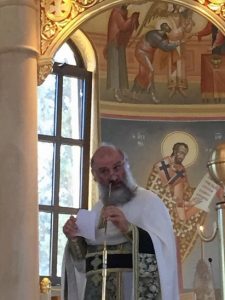Την πανηγυρική θεία Λειτουργία ετέλεσε ο Σεβασμιώτατος Μητροπολίτης της Ιεράς Μητροπόλεως Γλυφάδας, Ελληνικού, Βούλας, Βουλιαγμένης και Βάρης, κ. Παύλος, ο οποίος κατά την ομιλία του προς την πανηγυρίζουσα Ενορία εξήρε το έργο του Αιδεσιμολογιώτατου Πρωτοπρεσβύτερου π. Γεωργίου Αντζουλάτου που χάρη στις άοκνες προσπάθειες και τον ένθερμο ζήλο του, συνέβαλε αποφασιστικά στον εντοπισμό, την επανεύρεση και την επιστημονική αναγνώριση των τριών Αγίων που ασκήτεψαν στον ομώνυμο λόφο των Αγίων Φανέντων, στους πρόποδες του οποίου είναι χτισμένη η Σάμη.
