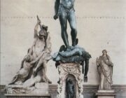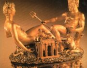O Μπενβενούτο Τσελίνι / Benvenuto Cellini, γεννήθηκε το 1500 στη Φλωρεντία. Καλλιτέχνης αργυροχρυσοχόος, γλύπτης, ζωγράφος, σχεδιαστής, στρατιώτης, μουσικός και συγγραφέας. Επηρεάστηκε βαθιά από την τέχνη του Μιχαήλ Αγγέλου, αλλά και τον «αμφισβήτησε» παρόλο που βασίστηκε σε πολλά μοτίβα και μελέτες του για τις μνημειακές γλυπτικές συνθέσεις του. Τα σωζόμενα εμβληματικά γλυπτικά του έργα χάρισαν στον Cellini μεγάλη φήμη, όπως το μεγάλων διαστάσεων χάλκινο γλυπτό, που παριστάνει τον Περσέα να κρατά το κεφάλι της Μέδουσας και κοσμεί την Πιάτσα ντε λα Σινιορία της Φλωρεντίας, συγκρινόμενο με τον διάσημο υπερμεγέθη «Δαυίδ» του Μιχαήλ Αγγλελου. Ο Τσελίνι θεωρείται ένας από τους χαρακτηριστικότερους κορυφαίους εκπροσώπους της ύστερης Αναγέννησης για το έργο και το περίτεχνο τεχνοτροπικό ύφος του. Ως τυπικός μανιεριστής επικεντρώθηκε στο πνεύμα της ομορφιάς, αλλά και απολάμβανε καυχώμενος για την παραβατική ζωή του. Δυστυχώς πολλά από τα υπέροχα έργα του σε χρυσό και ασήμι λιώθηκαν για την αξία του μετάλλου τους. Ο Τσελίνι πολέμησε κατά την Λεηλασία και την καταστροφή της Ρώμης το 1527 από τα στρατεύματα του Καρόλου Ε’ και τον διέταξαν να λιώσει ως ειδικός τα ιερατικά κοσμήματα του πάπα Κλήμεντος Ζ’. Όταν φυλακίστηκε για την κλοπή των κοσμημάτων του Πάπα, επινόησε μια από τις σπουδαίες αφηγήσεις φυλακισμένου – συμπεριλαμβανομένης της δηλητηρίασης του – και της δήθεν θρησκευτικής μεταστροφής του. Ωστόσο, παρά την μεταμέλειά του, μετά την αποφυλάκισή του κατηγορήθηκε πάλι για τον φόνο του δολοφόνου του αδελφού του. Ο Τσελίνι διάδιδε κομπάζοντας ότι ο Πάπας τον συγχώρησε αφού «άντρες σαν τον Μπενβενούτο, μοναδικοί στο επάγγελμά τους, δεν υπόκεινται στο νόμο»! Συνέχισε ακάθεκτος τις δράσεις του παρά το γεγονός είχε μολυνθεί από σύφιλη, αλλά και τις εναντίον του απόπειρες δολοφονίας από αντιπάλους επιχειρηματίες χρυσοχόους. Περιπλανήθηκε στις ηγεμονικές αυλές της Αναγεννησιακής Ιταλίας δημιουργώντας έξοχα μετάλλια και πολύτιμα αντικείμενα. Εργάστηκε για τους ισχυρότερους ηγεμόνες της εποχής του, στη Φλωρεντία, τη Ρώμη, τη Μάντοβα.