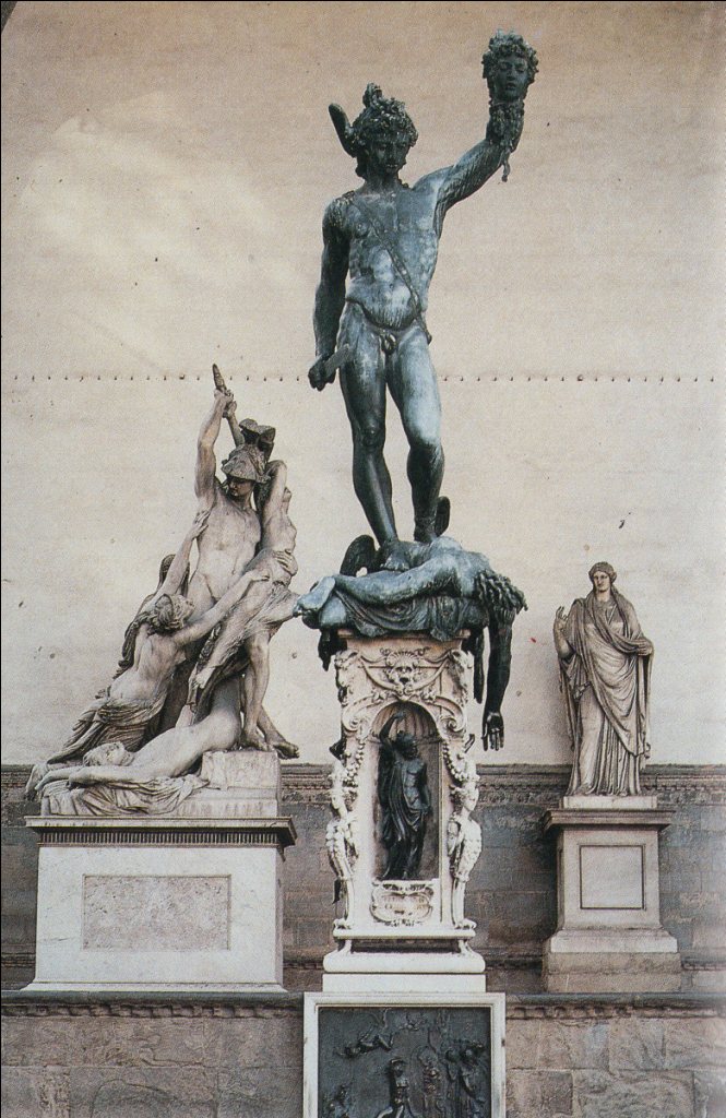 Το χάλκινο άγαλμα του Περσέα, που αποκαλύφθηκε στη Φλωρεντία το 1554 είναι μια ιδεατή, καθηλωτική «αυτοπροσωπογραφία» του. Απεικονίζει μια μοναχική ιδιοφυΐα, που μάχεται ενάντια σε όλους και με όλα για να μετατρέψει το αίμα σε μπρούντζο, δημιουργώντας έναν ήρωα για να ανταγωνιστεί το αναβαπτισμένο κλασικό παρελθόν. Στην πραγματικότητα, το άγαλμα, το δημιούργησε χρησιμοποιώντας μια μεγάλη ομάδα τεχνιτών και ποικίλων μεθόδων. Στην μετέπειτα διαμονή του στο Παρίσι, διαδέχθηκε την υψηλή θέση του μέτρ Λεονάρντο ντα Βίντσι, ως αμειβόμενος καλλιτέχνης της Αυλής του βασιλιά, Φραγκίσκου Α’ της Γαλλίας. Ο Τσελίνι παράμεινε στη Γαλλία μέχρι το 1545. Αυτή την εξαιρετικά πλούσια παραγωγική του περίοδο επιστεγάζουν δύο ιδιότυπες δημιουργίες του. Πρόκειται για την εντυπωσιακή χρυσή Αλατιέρα (la saliera) του Βασιλιά, τυπικό δείγμα μανιεριστικής υπερβολής της ύστερης Αναγέννησης και την επιμήκη μπρούντζινη Νύμφη του Φοντενεμπλώ. Στην μυθολογική ανάγλυφη σύνθεση, μοντέλο είχε την νεαρή ερωμένη του που έγινε μετά από πολλά επεισόδια και σύζυγος του.