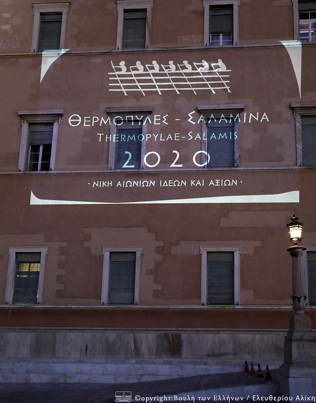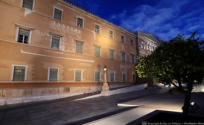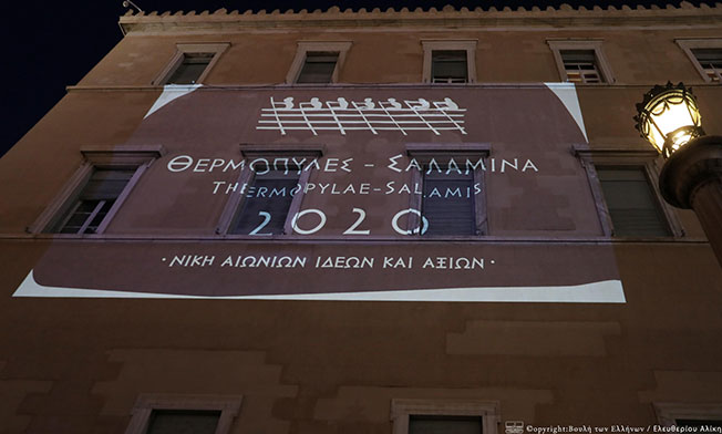 Η Βουλή φωταγωγήθηκε με το λογότυπο του Επετειακού Έτους «Θερμοπύλες – Σαλαμίνα 2020»