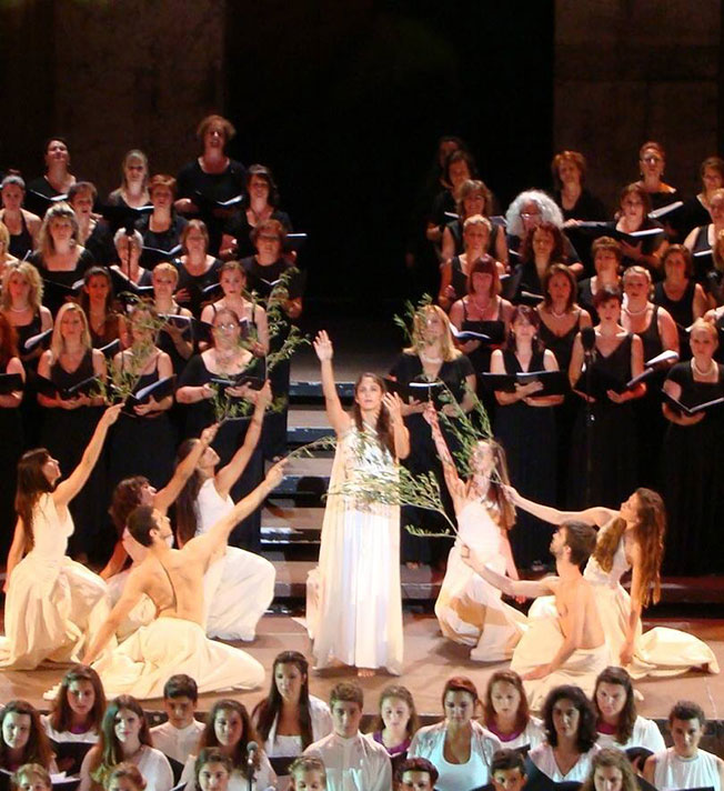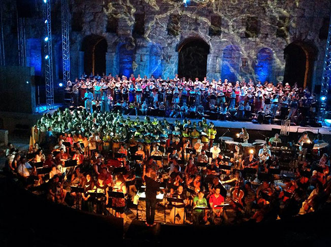 Οι θεατές στο κατάμεστο Θέατρο απόλαυσαν το κορυφαίο αυτό γεγονός το οποίο στο πρώτο μέρος του αποδόθηκαν έργα των Καρρέρ Παύλου, Λαυράγκα Διονύσιου και Σαμάρα Σπύρου, ενώ στο δεύτερο μέρος τραγουδήθηκαν και οι εικοσιτέσσερις ωδές του «Ύμνου Εις την Ελευθερία» του Διονυσίου Σολωμού από τις δώδεκα Επτανησιακές Χορωδίες, την Χορωδία του Δήμου Αθηναίων και την παιδική Χορωδία του Σπύρου Λάμπρου συνοδεία της Συμφωνικής Ορχήστρας του Δήμου Αθηναίων.